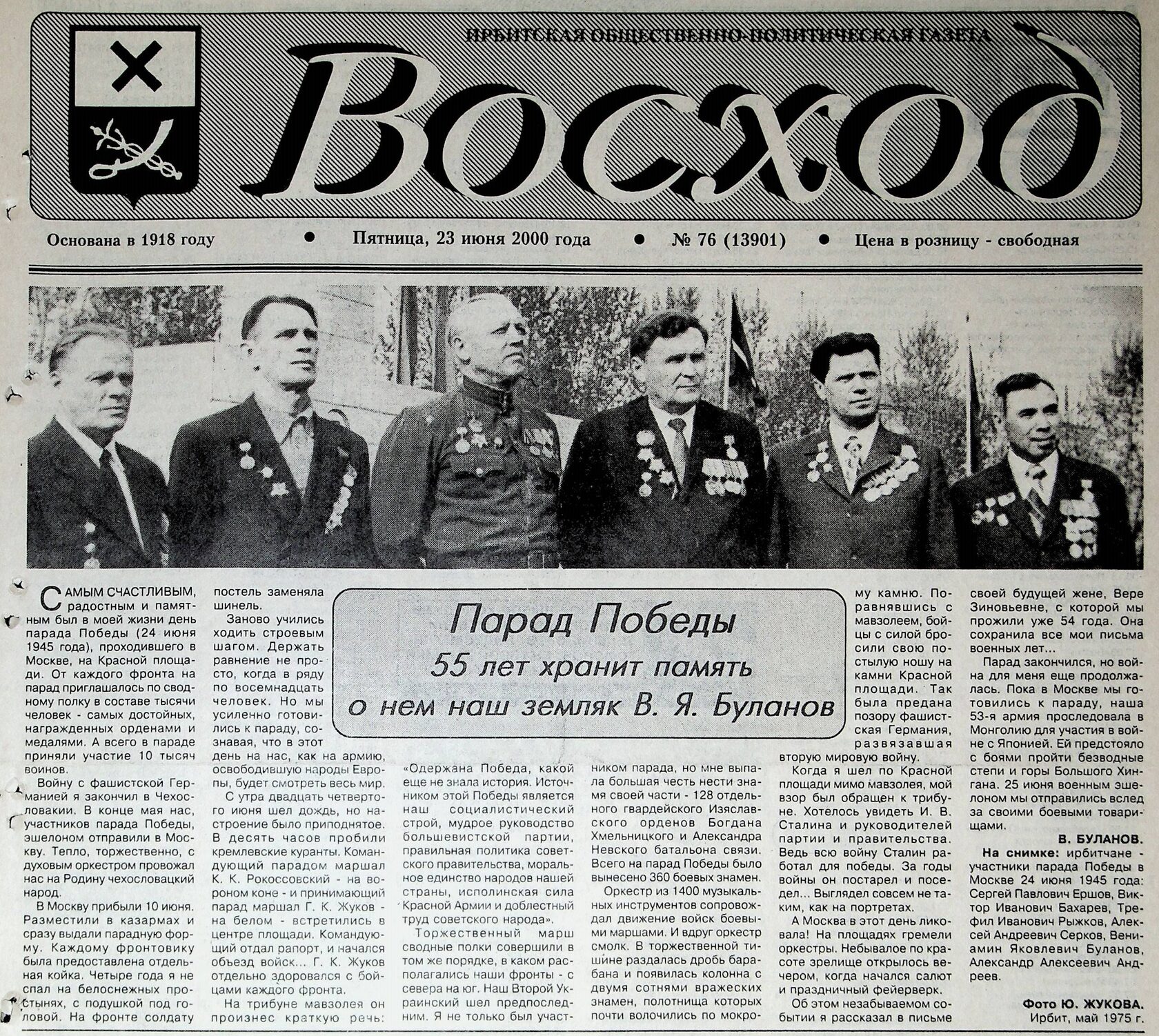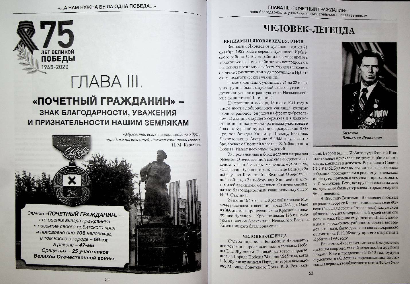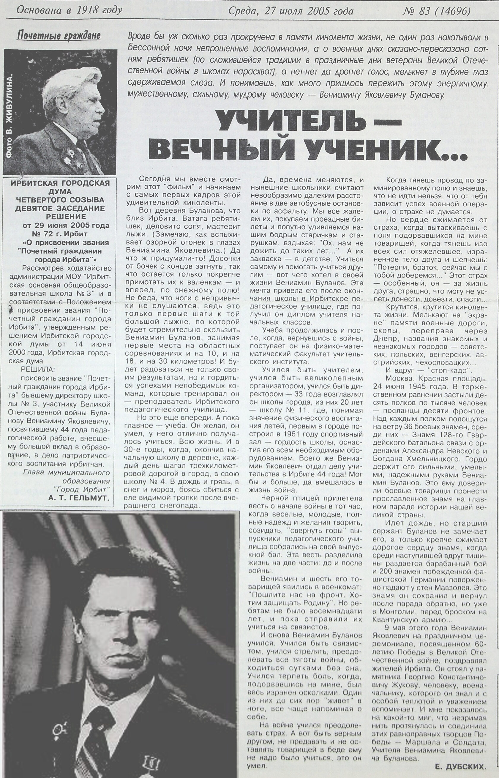 При составлении виртуальной выставки использованы фотоматериалы из сборника «Учитель, фронтовик, Почётный гражданин… : посвящается Вениамину Яковлевичу Буланову» / сост. Л. Кизерова. – Ирбит, 2008. – С. 25-26. – (Ирбитская библиотека).