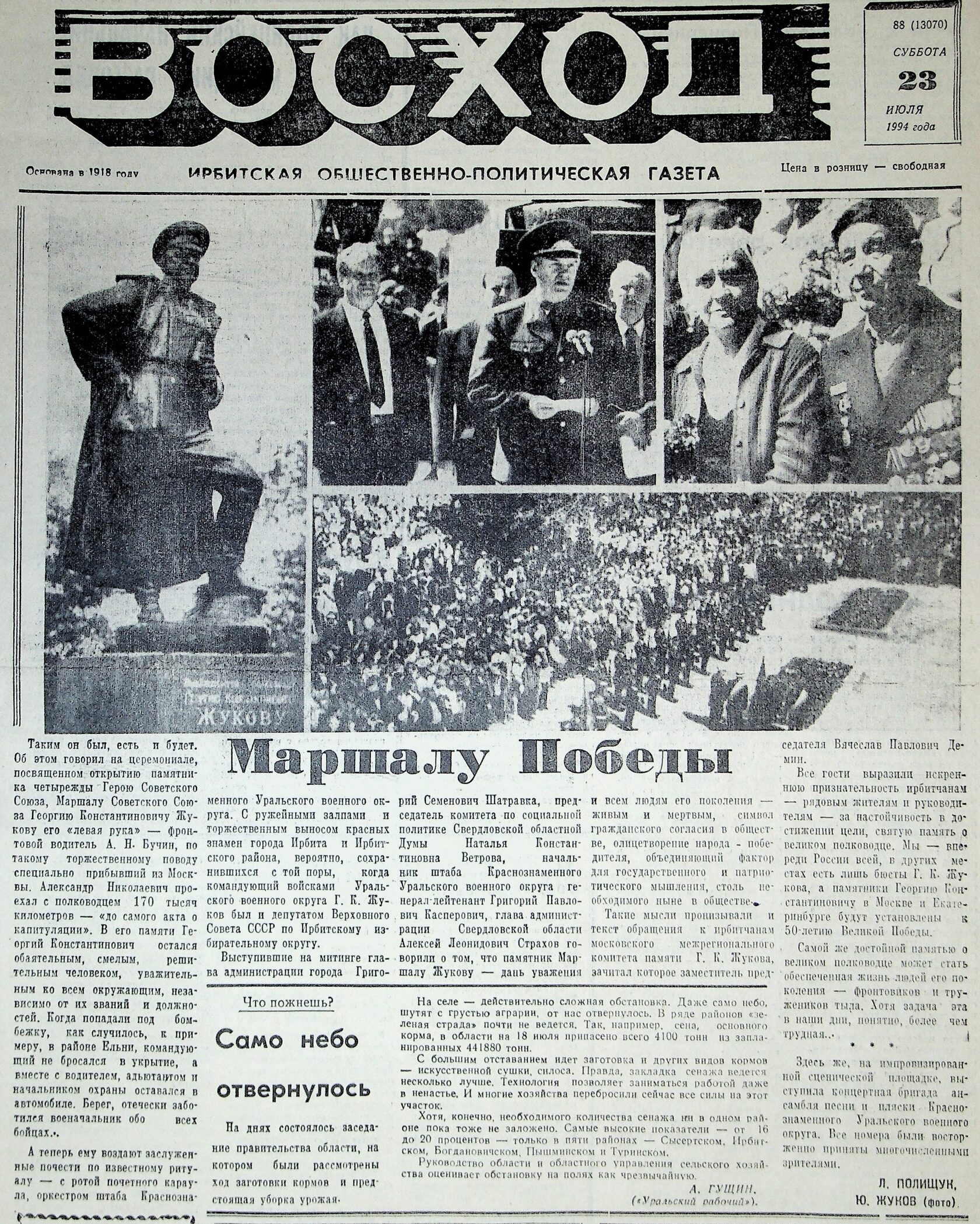 Г. К. Жуков поднялся на трибуну Мавзолея и от имени и по поручению Советского правительства произнес краткую речь о значимости и величии Победы...»