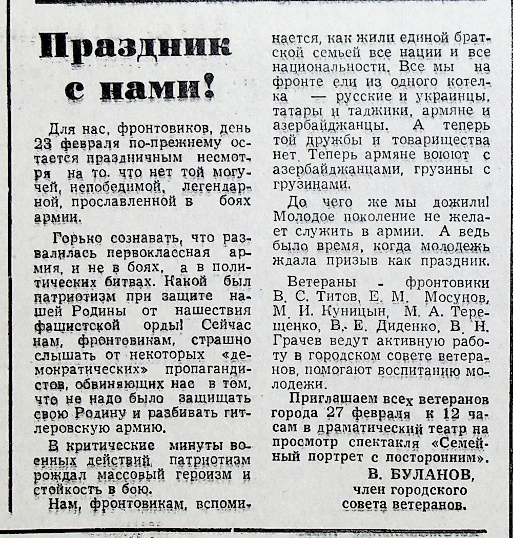 Из воспоминаний Вениамина Яковлевича Буланова:
