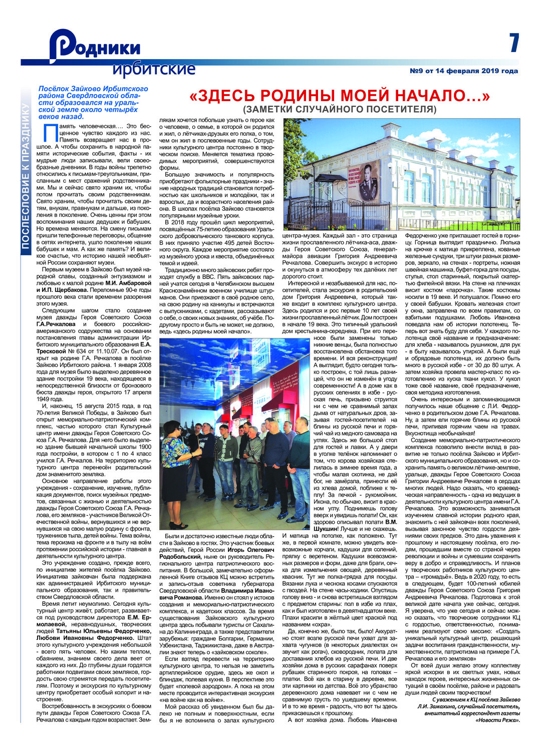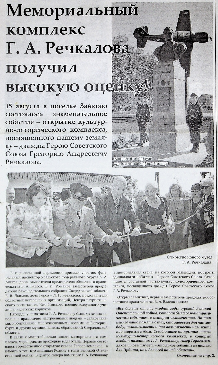С 1977-года в честь нашего выдающегося земляка Григория Речкалова ежегодно проходит традиционный легкоатлетический пробег по маршруту Зайково — Ирбит.