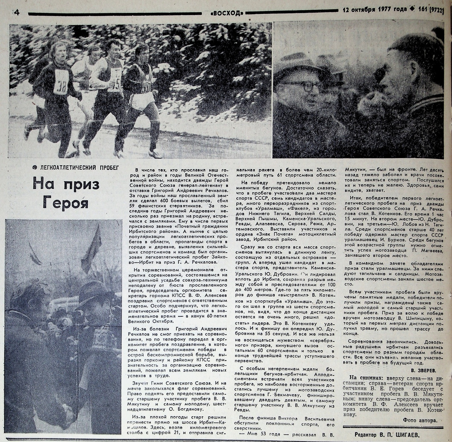 На пробеге предполагалось присутствие самого Григория Андреевича. Но, как писала газета «Восход» 12 октября 1977 года в отчётной статье «На приз Героя»: «Из-за болезни Григорий Андреевич не смог приехать на соревнования, но по телефону передал в оргкомитет пробега поздравление, в котором пожелал спортсменам победы…». С тех пор пробег становится традиционным и проводится ежегодно, как правило, в первое воскресенье октября. С каждым годом количество участников только увеличивалось.