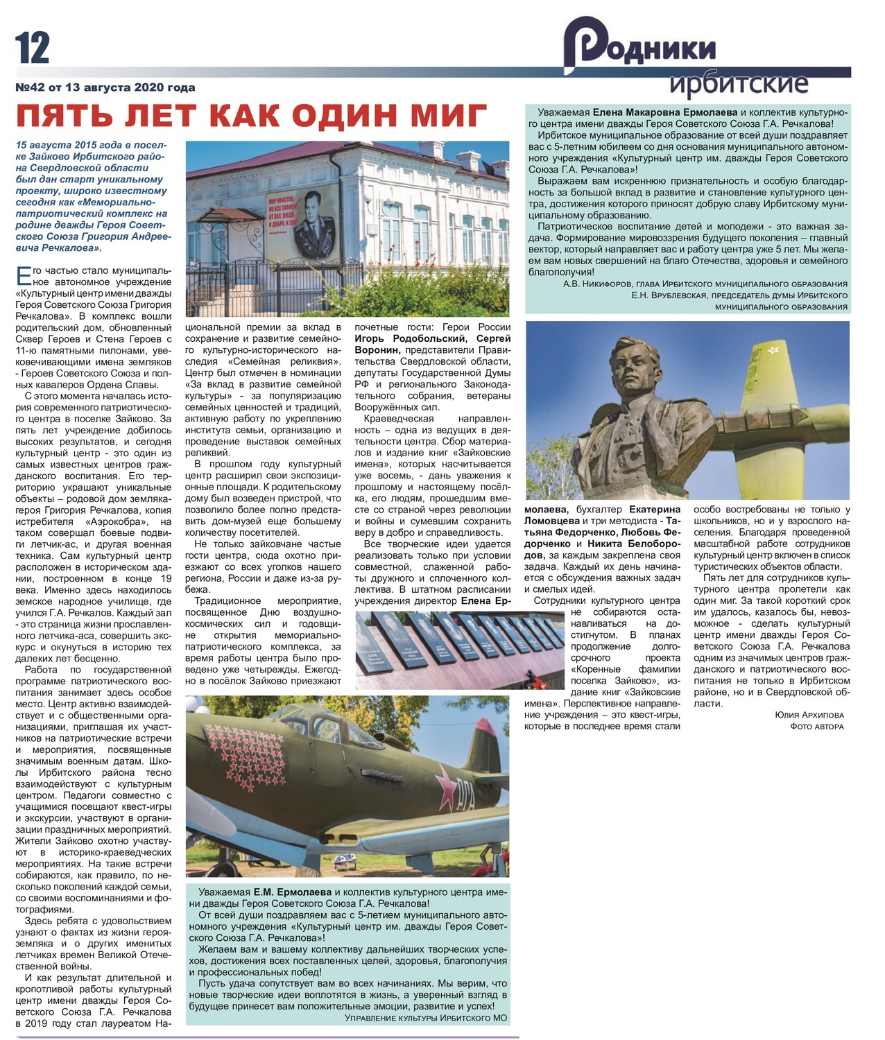 В рамках подготовки к празднованию 100-летия со дня рождения летчика-аса состоялась торжественная презентация нового экспоната — истребителя П-39 «Аэрокобра». Имя прославленного летчика присвоено Зайковской средней общеобразовательной школе №1.